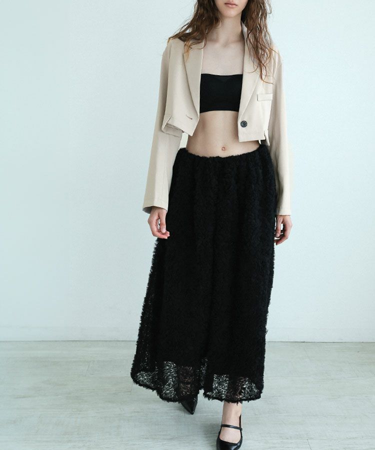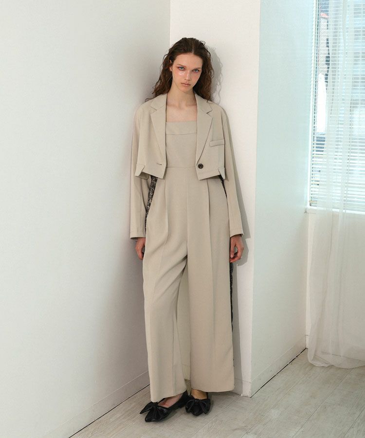 ジャケットとオールインワンにはとろみと落ち感のある素材を採用。