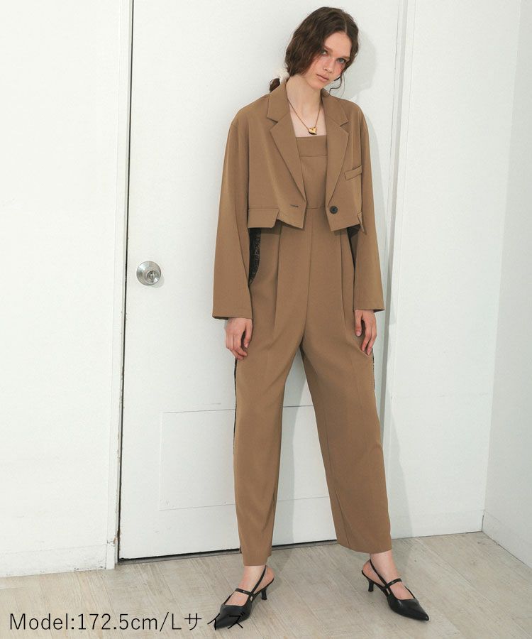 オールインワンはサイドにレーステープを施しており、女性らしさとモードをミックスさせた雰囲気に仕上げました。