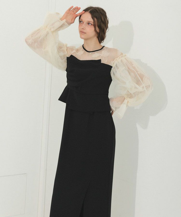 ヨークから袖にかけてはフロッキーフラワープリントの素材を使用。