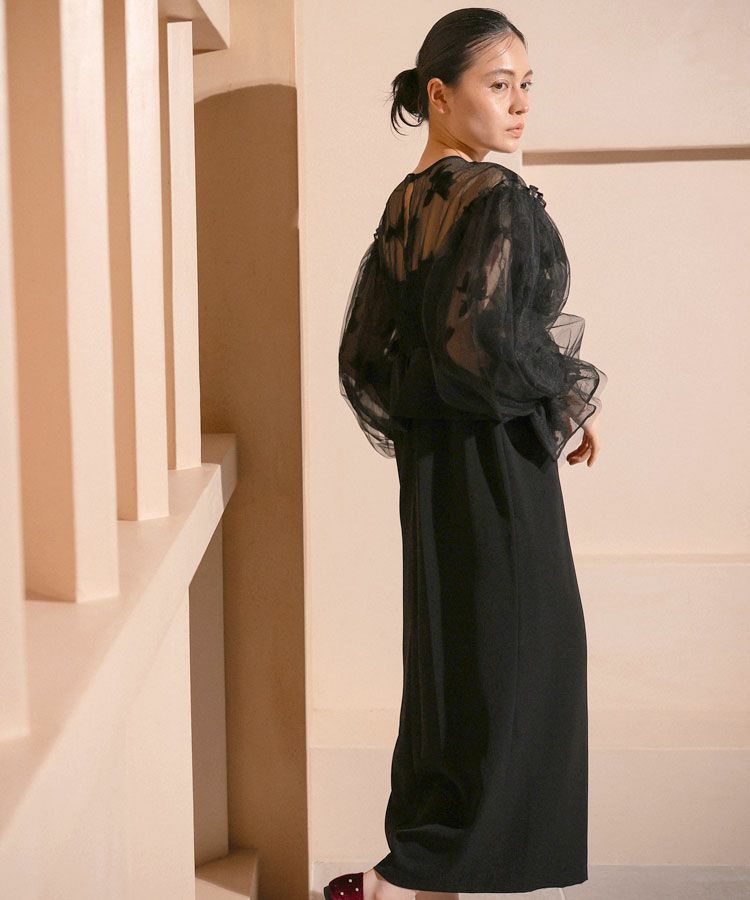 チュールを重ねることで、ボリュームが出るだけではなく、柄が透けることで奥行のある仕上がりに。
