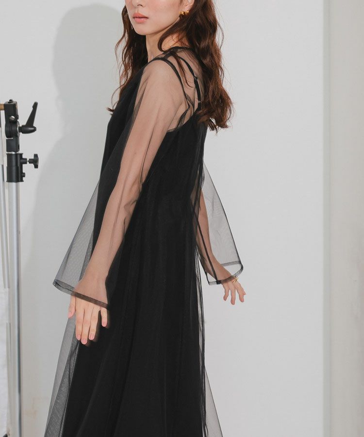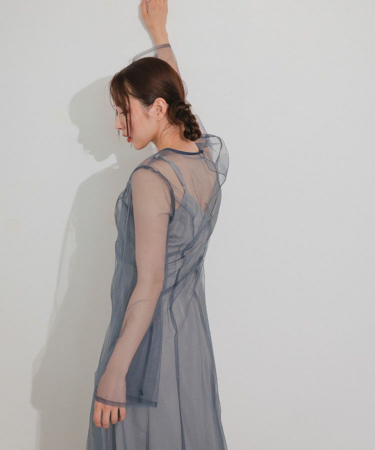 ワンピース本体は、空気をまとうようなエアリーなフレアシルエット。