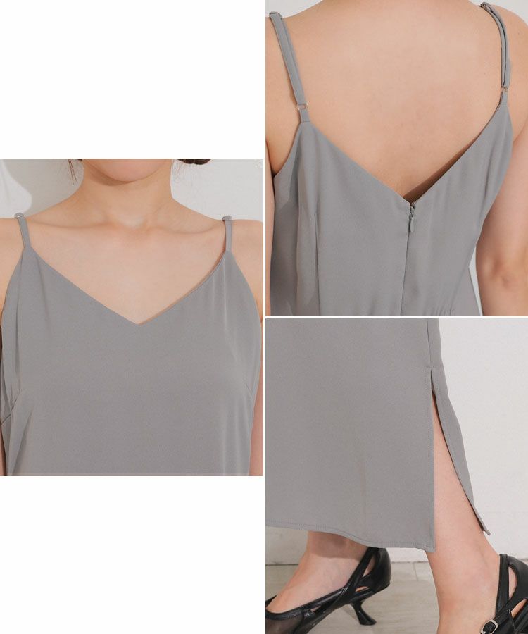 インナーワンピースは前後Vネックのすっきりとしたカッティングで、抜け感のある洗練されたレイヤードスタイルに仕上げました。
