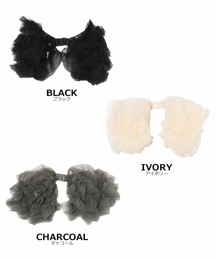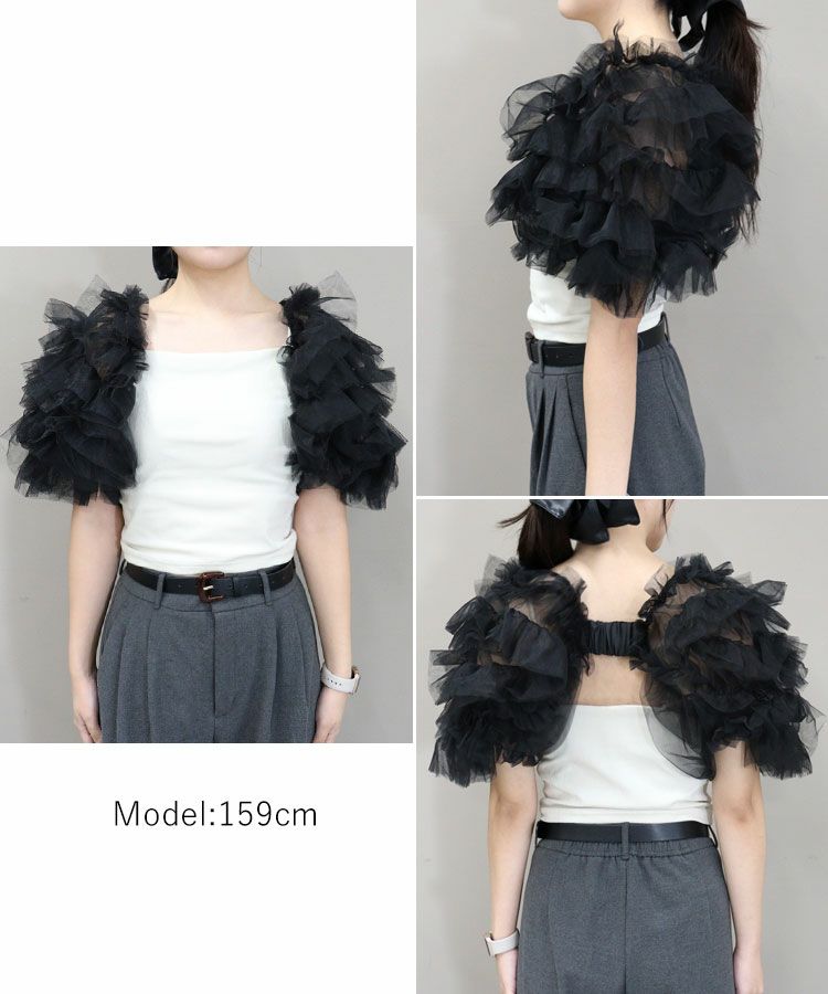大小のフリルを贅沢に重ねたチュールが存在感を放つボレロ。