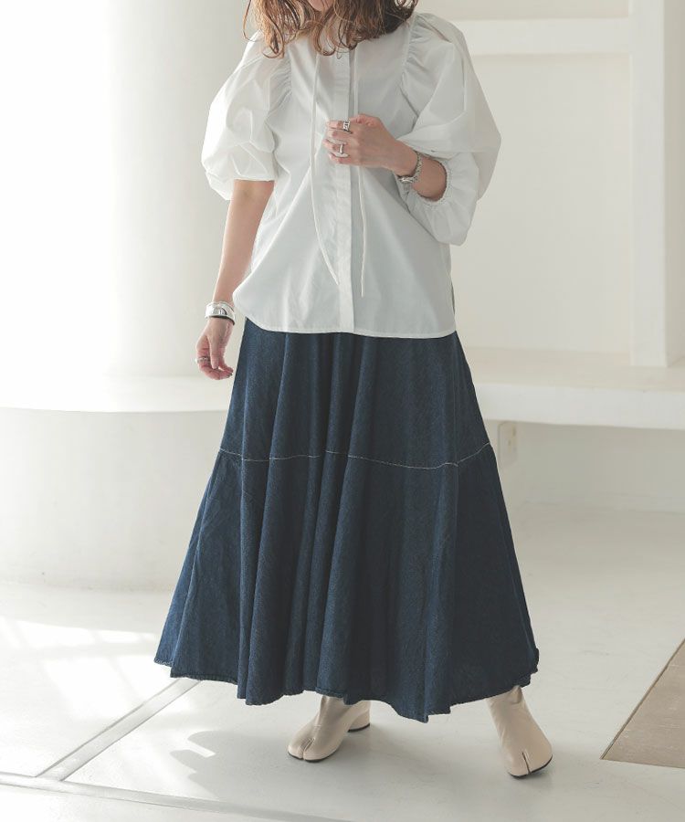 ミドル丈で幅広いコーデに取り入れやすいのも嬉しいポイントです。