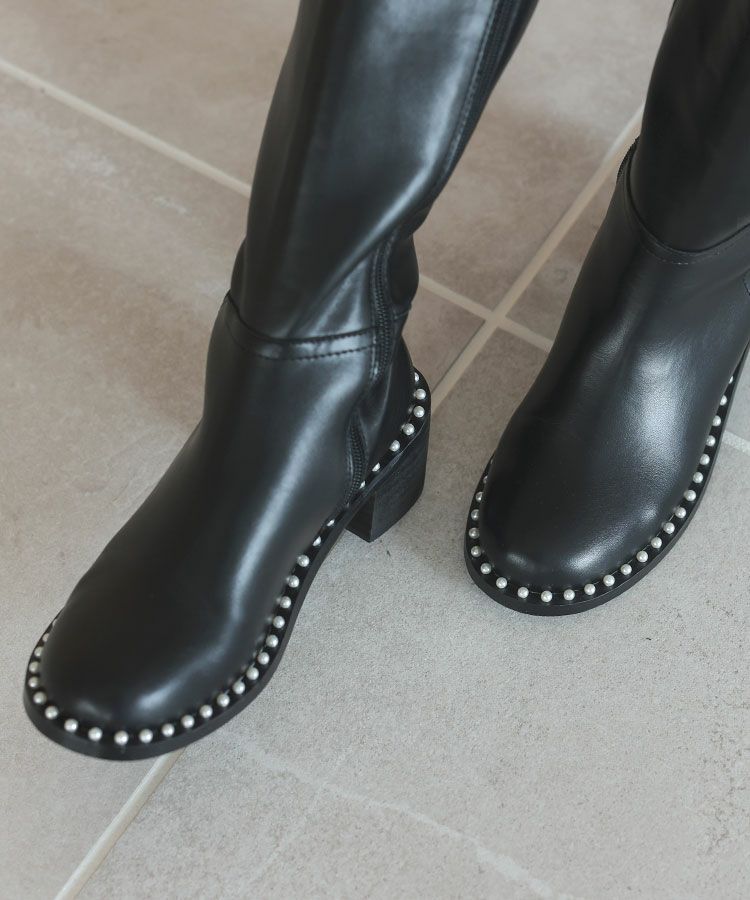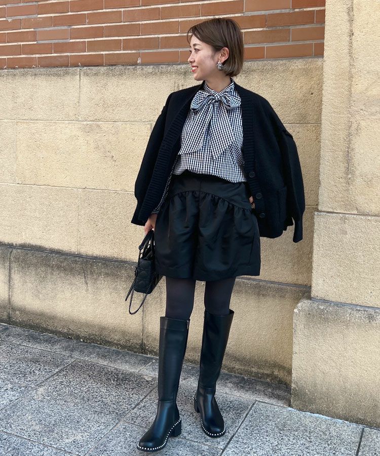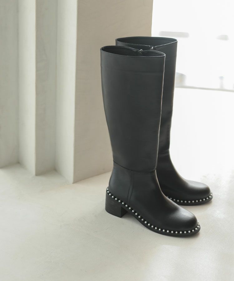 ショートボトムスやロングスカート、ワンピースとも合わせやすく、ポイントにもなるロングブーツは今年のマストアイテムです。