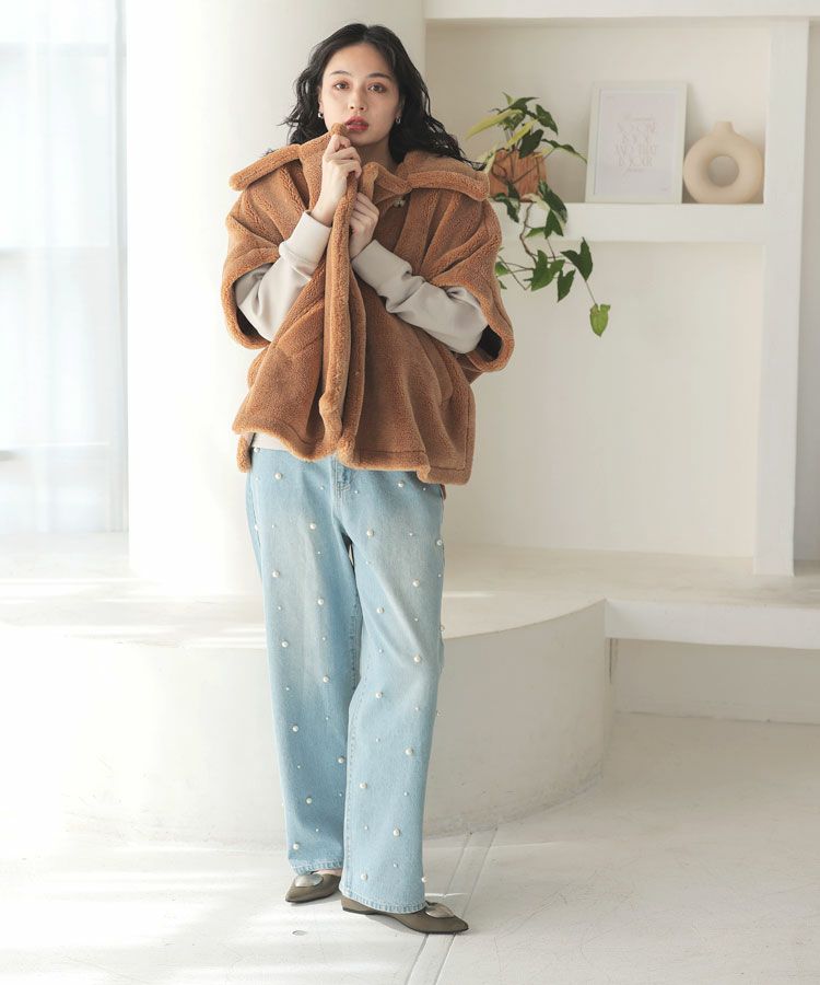 まきさんコラボのチュールフリルサスペ付きハイウエストワイドパンツをサスペンダーを取ってフェザーペプラムトップスと合わせてみました。 このワイドパンツは形が感動するほど綺麗で脚長効果抜群!