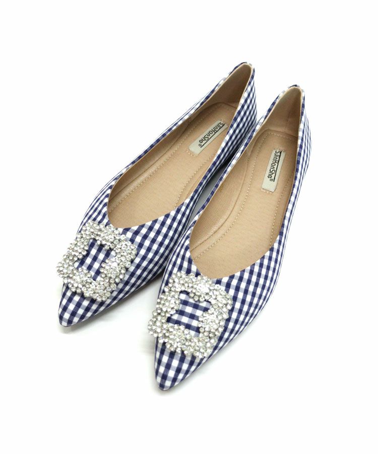 紺のチェックの靴はみたことなかったので、 ひとめぼれで買いました。サイズは23.5 いつもどの靴もだいたい23.5選びます。 きつくなく、かたくもないので、履きやすいです。 ジーンズや、白パンツにあわせて履くとかわいいです。 ビジューもかわいい。