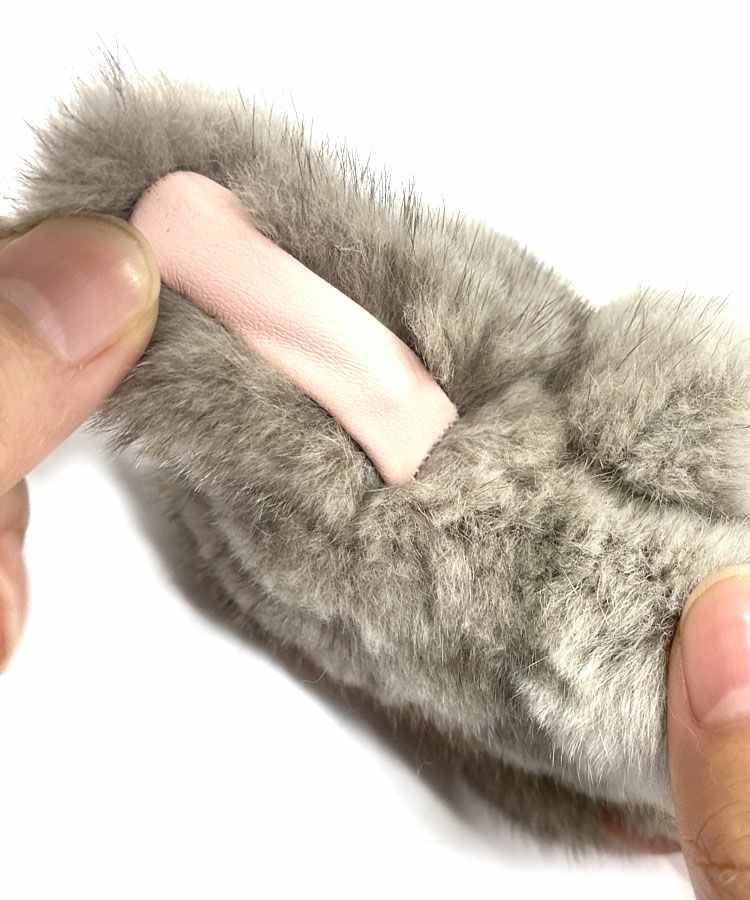 ■到着時、ファーの毛並みにクセが付いている場合がありますが優しく芯の形を整えたあと、 ドライヤーを当てると通常の形に戻ります。