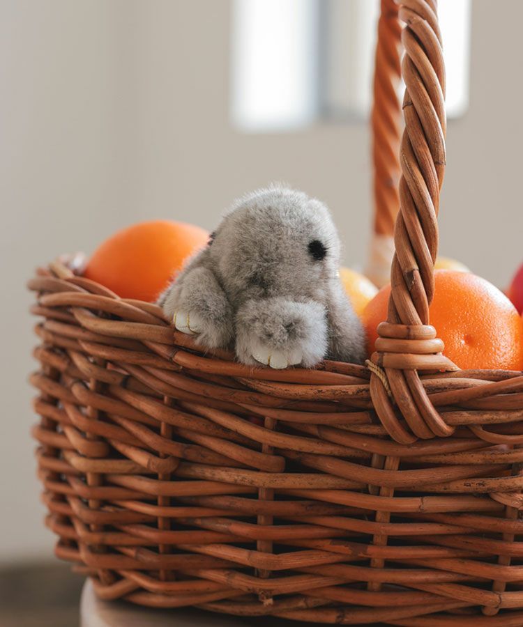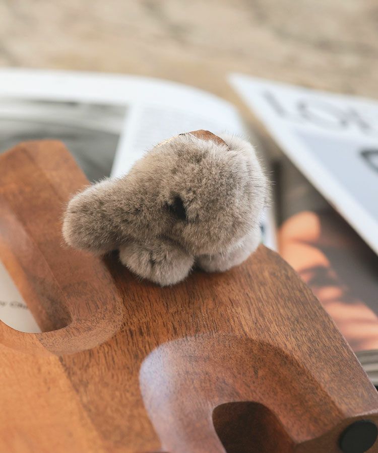 愛くるしい表情と佇まいのラビットファーうさぎチャーム。