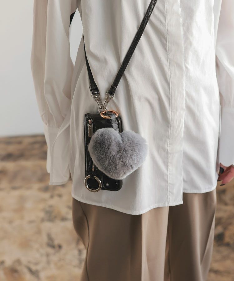 コロンとしたフォルムが可愛いラビットファーハートチャーム。
