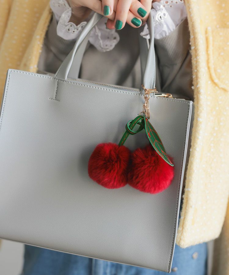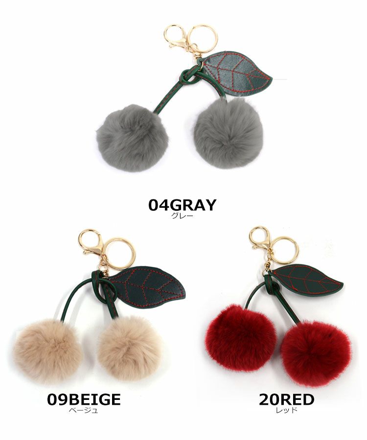 コロンとしたフォルムが可愛いラビットファーさくらんぼチャーム。