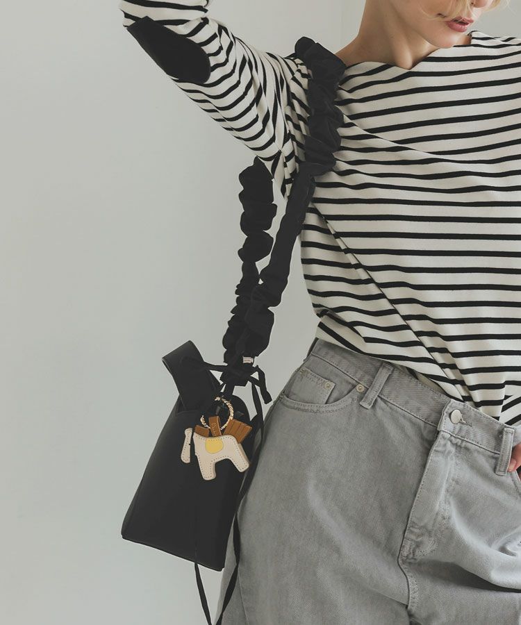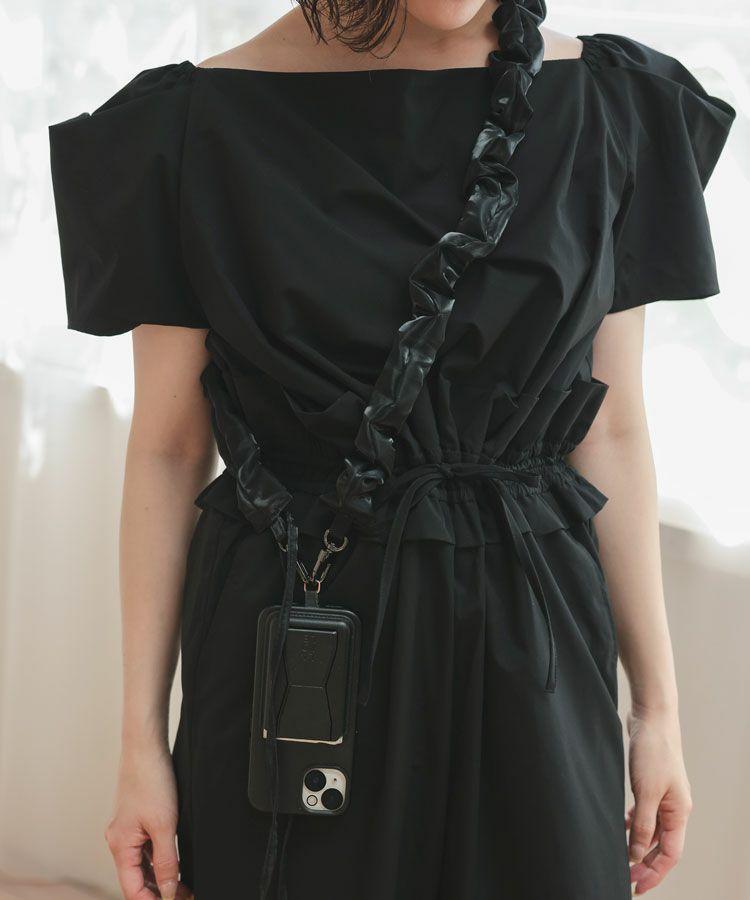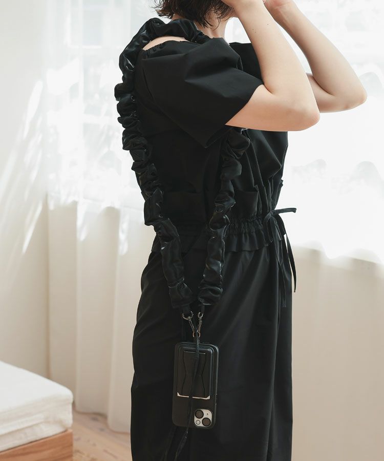 シュシュのような可愛らしい風合いのショルダーストラップ。