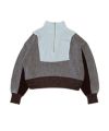 ストライプ調の柄デザインとネックウォーマーを重ねたようなデザインが目を引くオシャレニット。