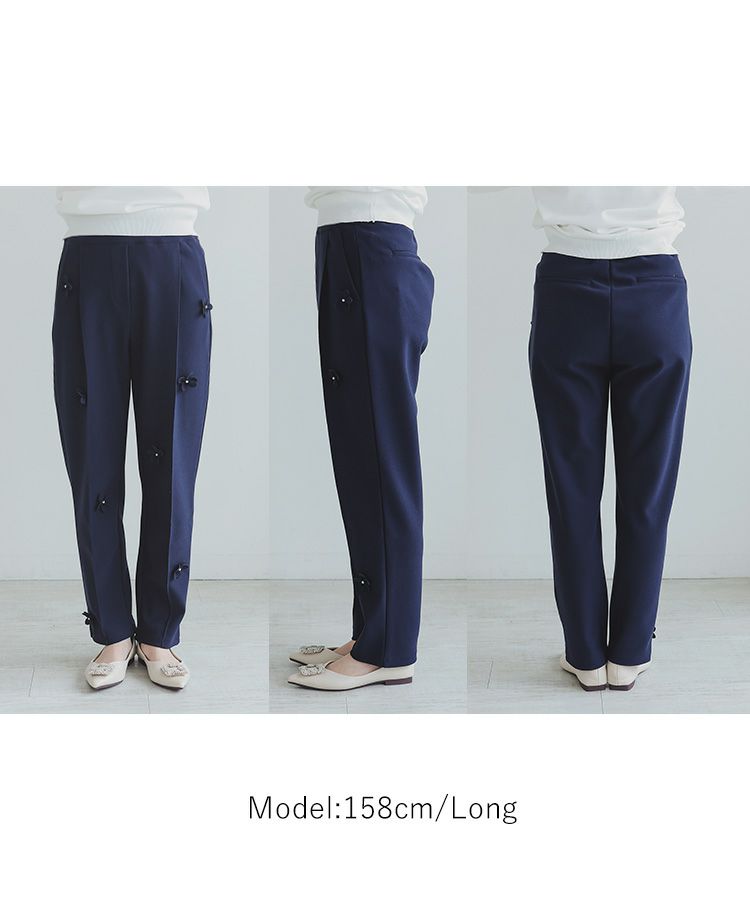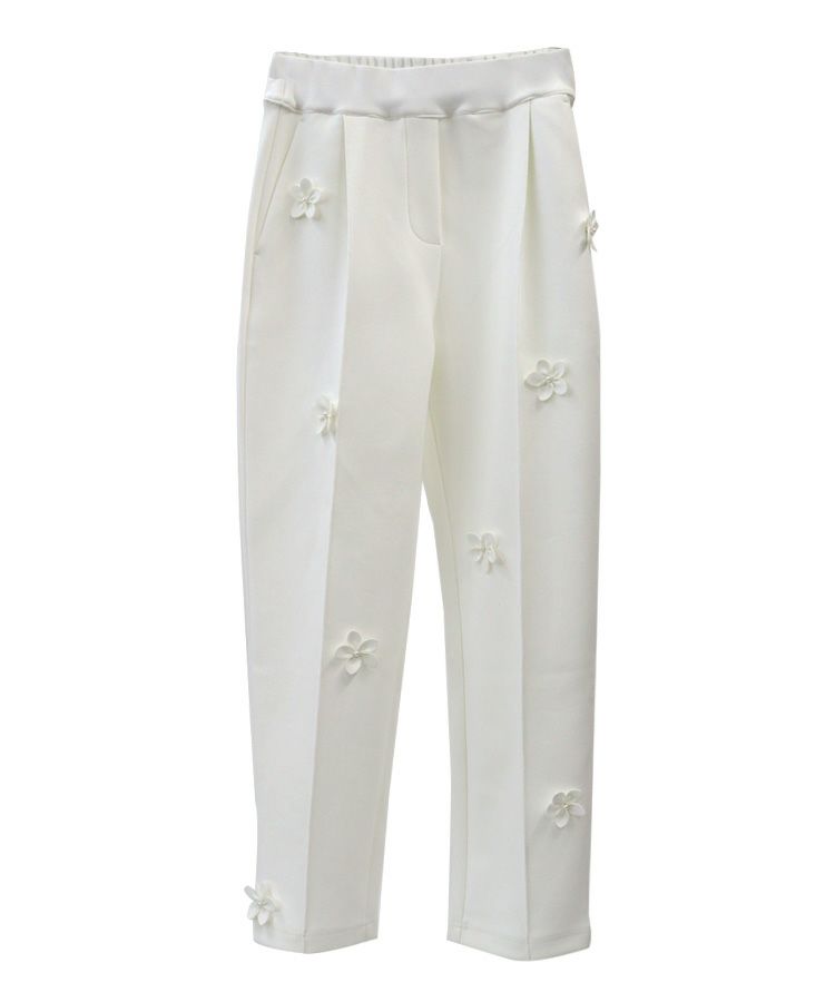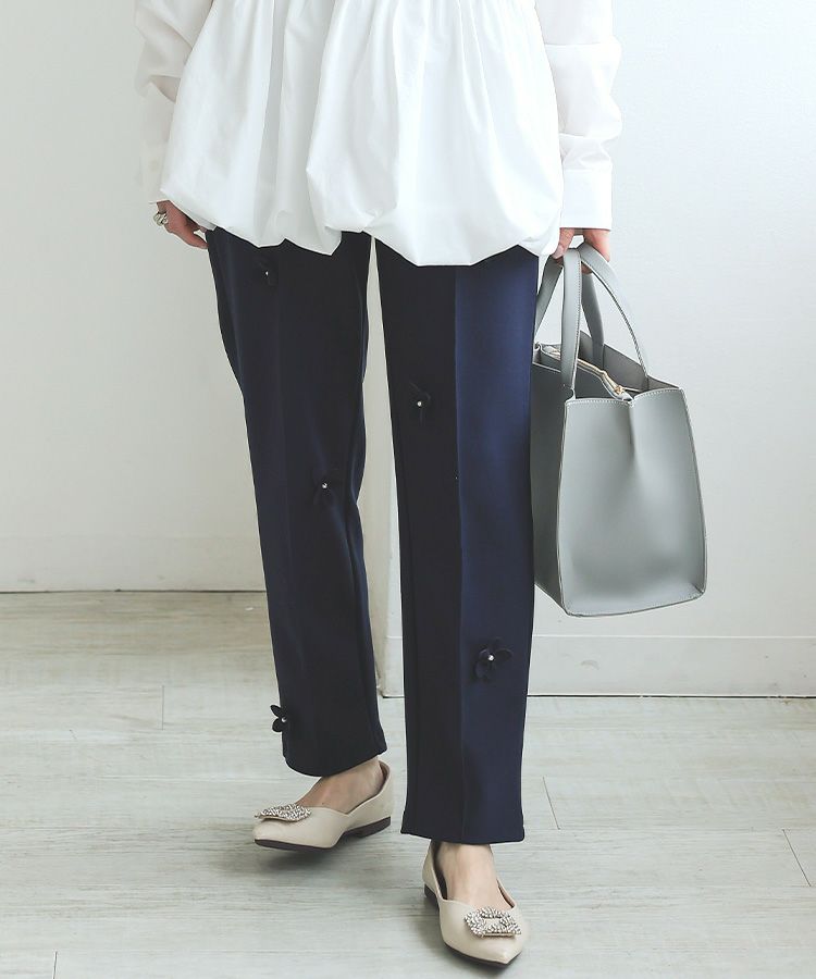驚きの履き心地の良さとシルエット美で驚いていただける事を追求した、大人気のストレッチパンツから、今季らしい立体フラワーバージョンが登場。
