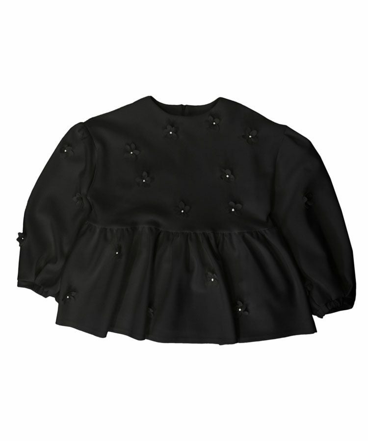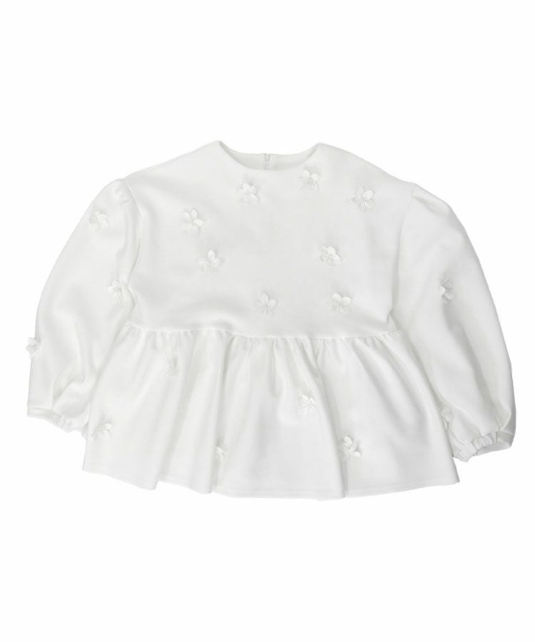 感動イージーサロペットにフラワーモチーフトップスを合わせて甘すぎないコーデにしました。フラワーの甘さとパンツのカジュアルさを掛け合わせて、落ち着いた印象を与えてくれます。バッグでカラーを足してワンポイントに。