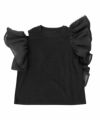 買ってよかった名品パンツ。ウエストフリルがポイントで、真っ黒じゃないニュアンスブラックカラーがとてもお気に入りです。アキロンコラボサンダルもブラック仕様でモードに仕上げました。