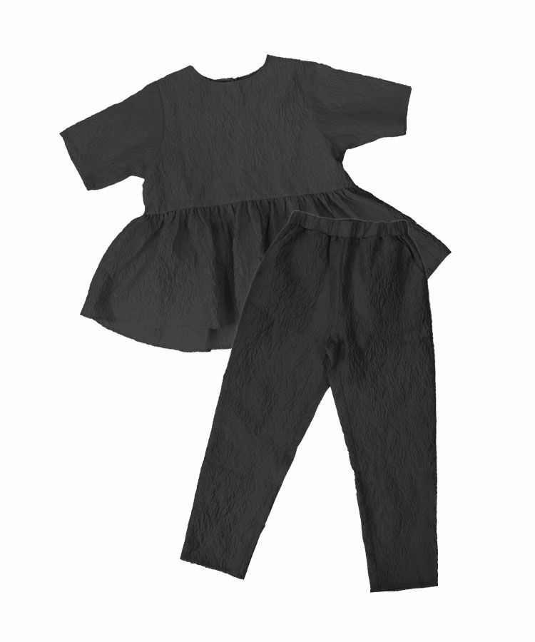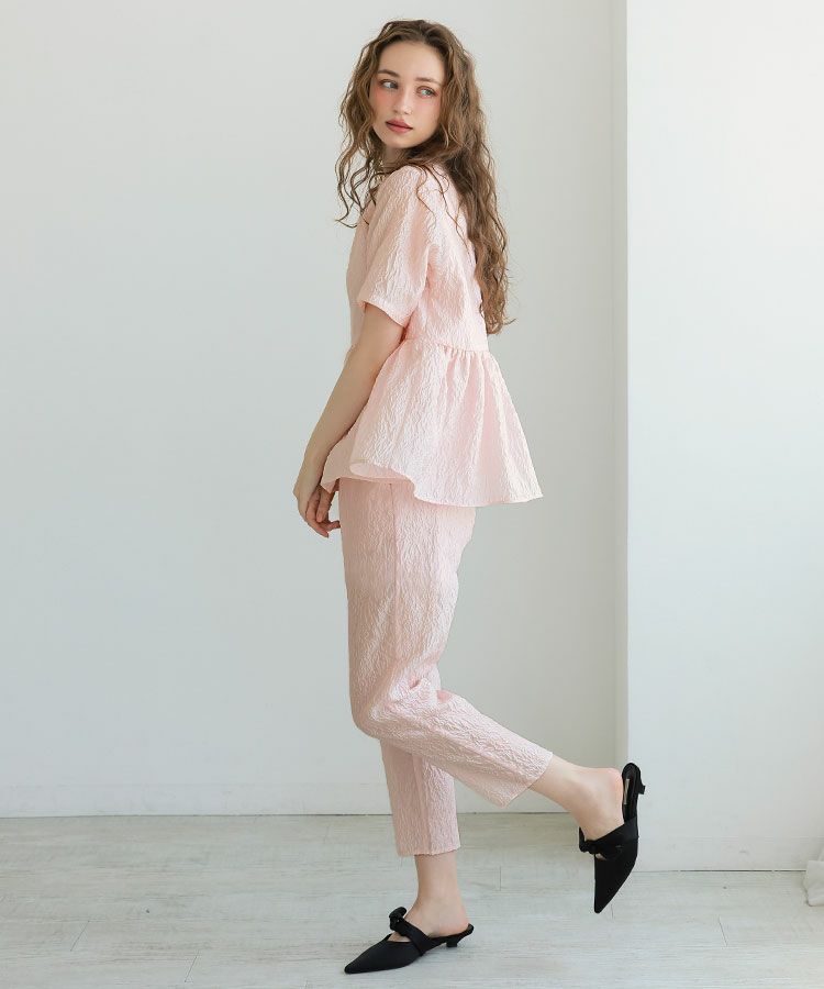 軽やかな透け感と立体感のあるジャガード生地が魅力のセットアップ。
