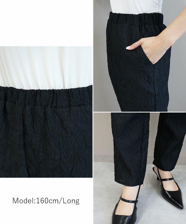 ウエスト(ゴム) 約30-38、ヒップ 約49、わたり 約31、股上 約32.5、股下 約63、裾幅 約16、総丈 約92