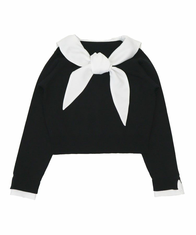 ビッグリボンのセーラーカラーシャツをレイヤードしたようなデザインが上品な大人ドッキングニット。
