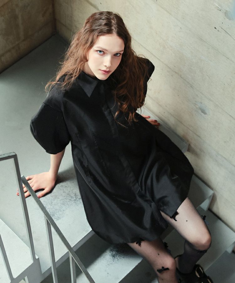 ボリュームのあるお袖が特徴的でモードとスポーティーが絶妙にミックスされた大人ワンピース。