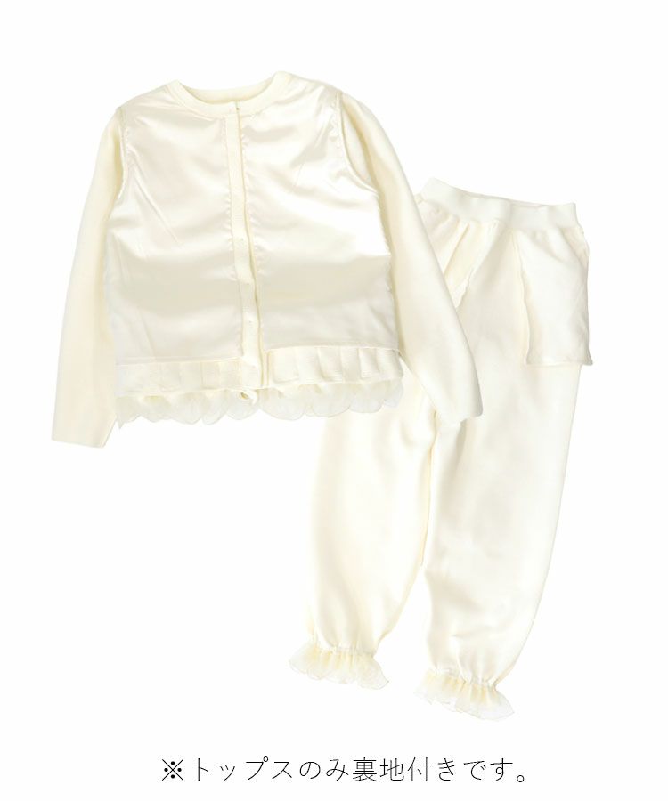 透け感:ホワイトのみやや有、裏地:トップスのみ有、伸縮性:あり、ポケット:パンツのみ2