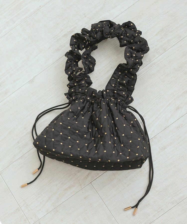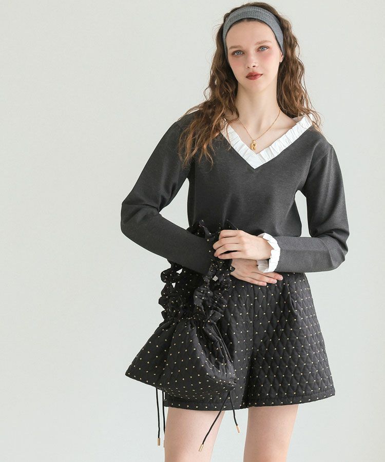 手編みの温もりを感じるホワイトのハンドメイドニットに、ドットキルトパンツの軽やかな表情をプラス。やわらかさと遊び心が程よく調和した、冬のこなれカジュアルスタイルです。