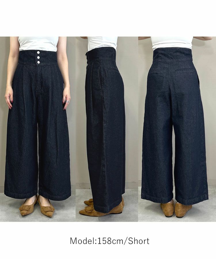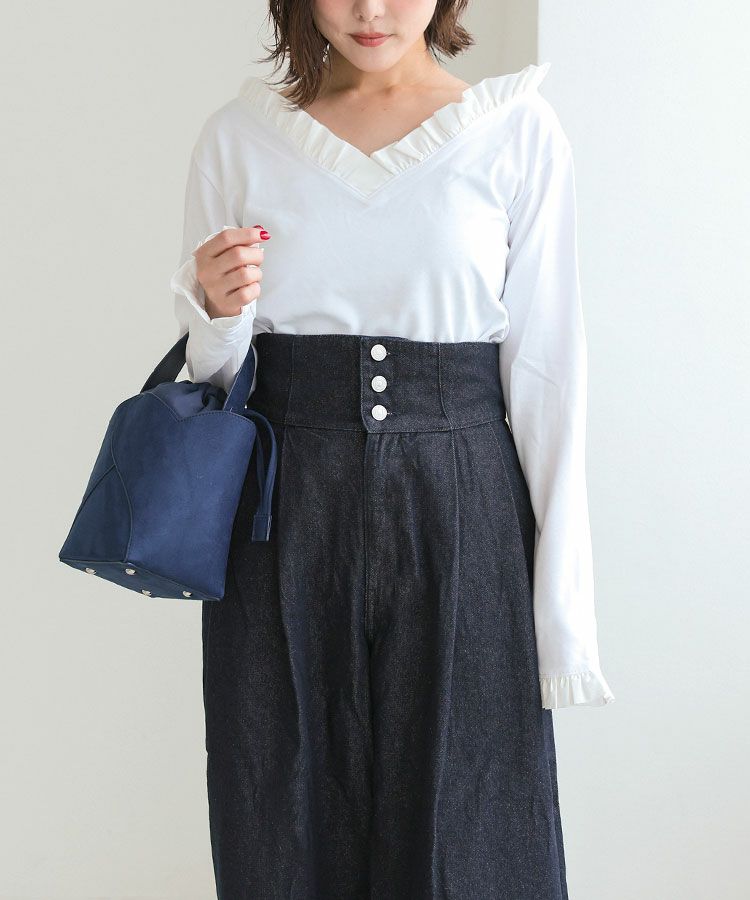 ハイウエストのタックデニムで低身長には欠かせない脚長効果◎今から大活躍のトップスにスニーカーでカジュアルに!キャメルのバッグがコンパクトながらもしっかりとアクセント!