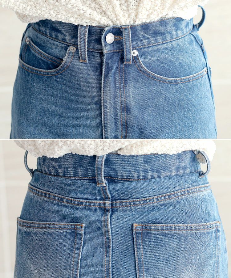 フレアラインが華やかさをプラス。低身長さんでも重く見えない絶妙シルエットで、こなれ感たっぷりに仕上がるデニムスタイル。