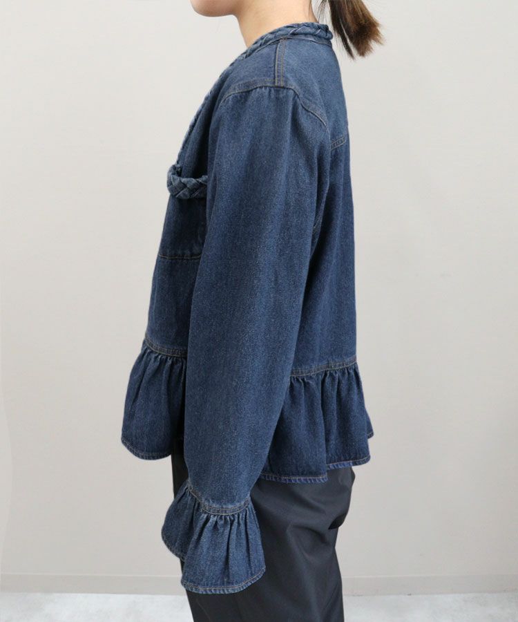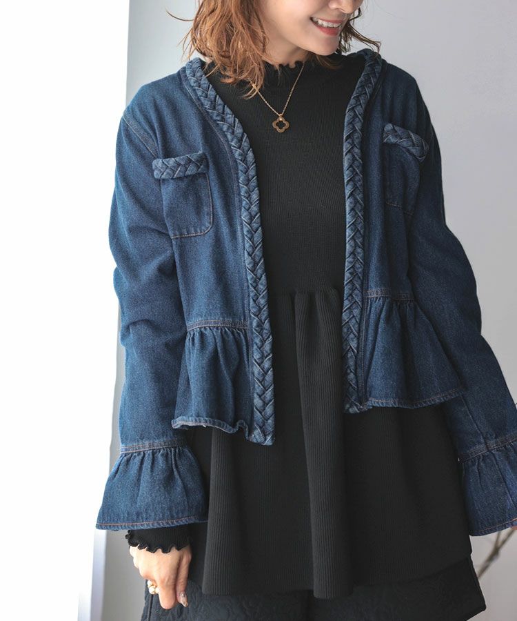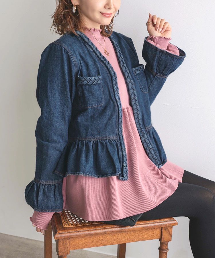 本格的に秋到来。 コラボのデニムジャケットをプラスで夏のスタイリングが一気に旬なコーデに。 ペプラムデザインで腰位置が高く見えるのも好ポイント。