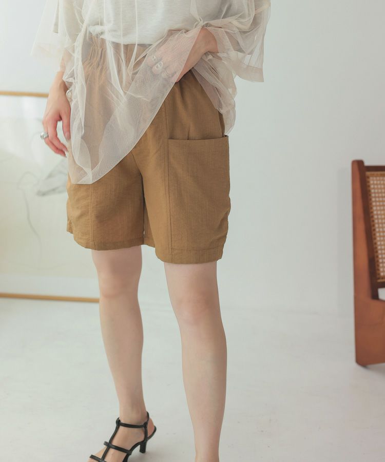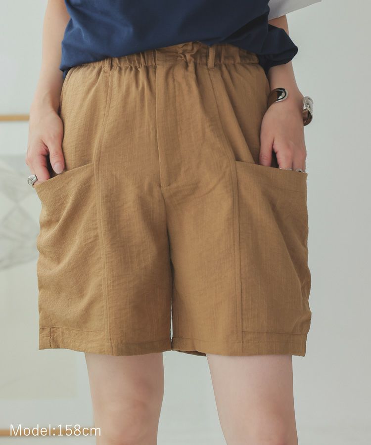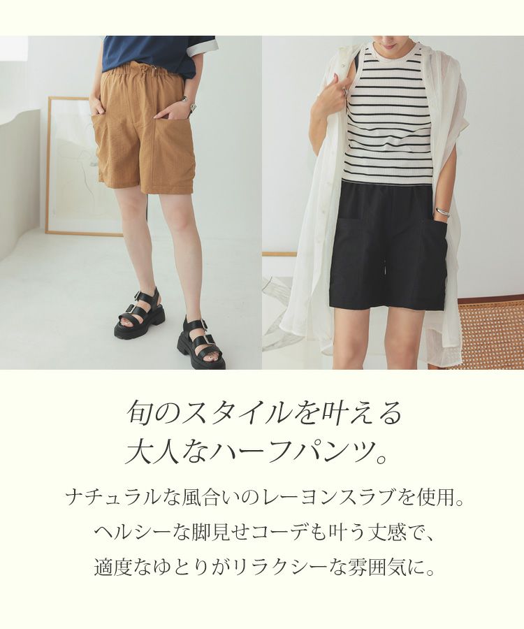 スラブ素材のナチュラルな表情が魅力の大人ハーフパンツ。