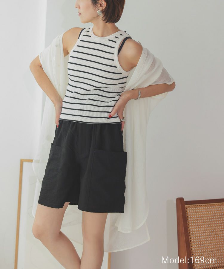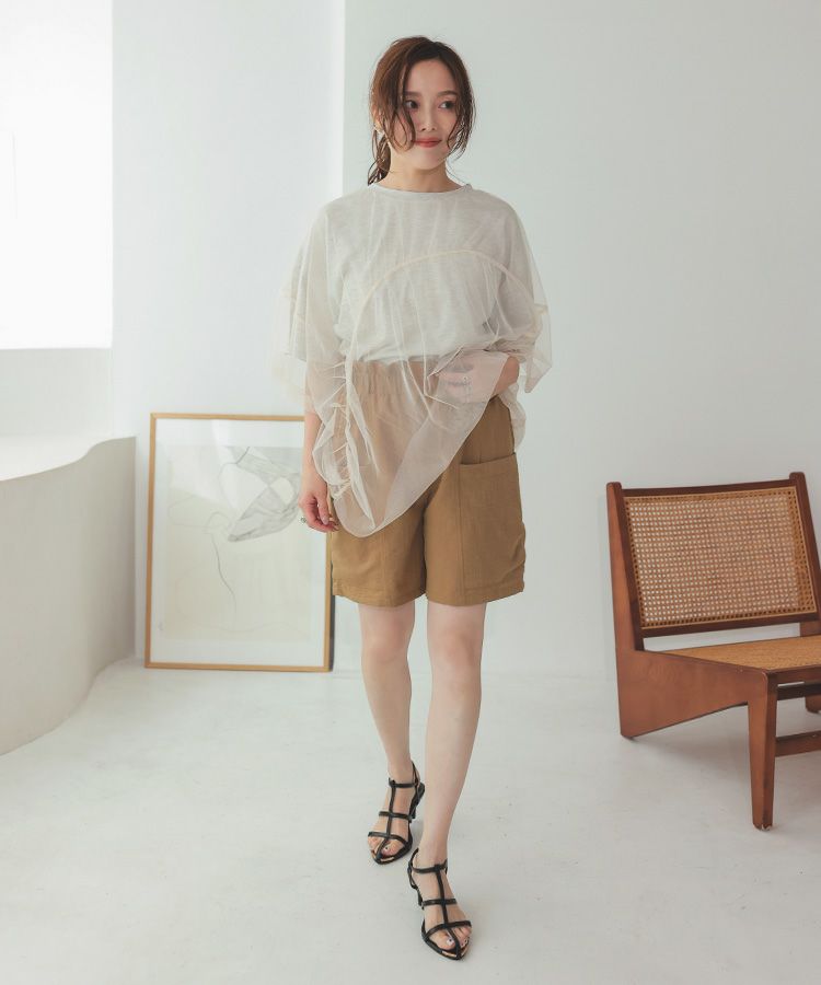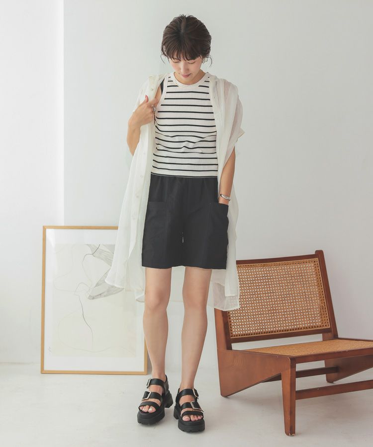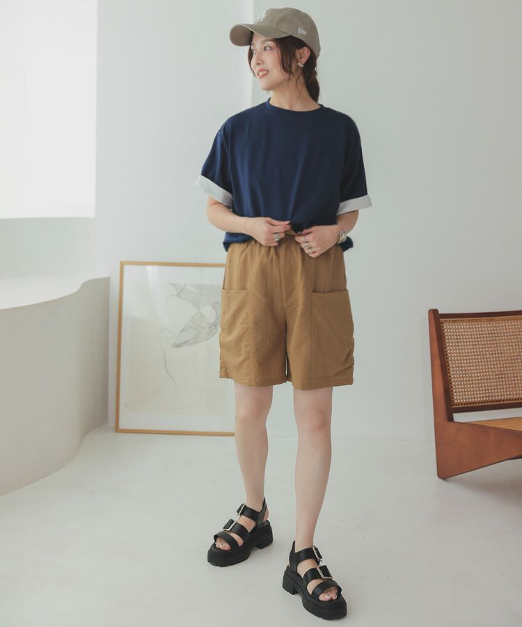 ヘルシーな脚見せコーデも叶う丈感で、適度なゆとりがリラクシーな雰囲気に。