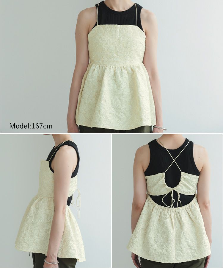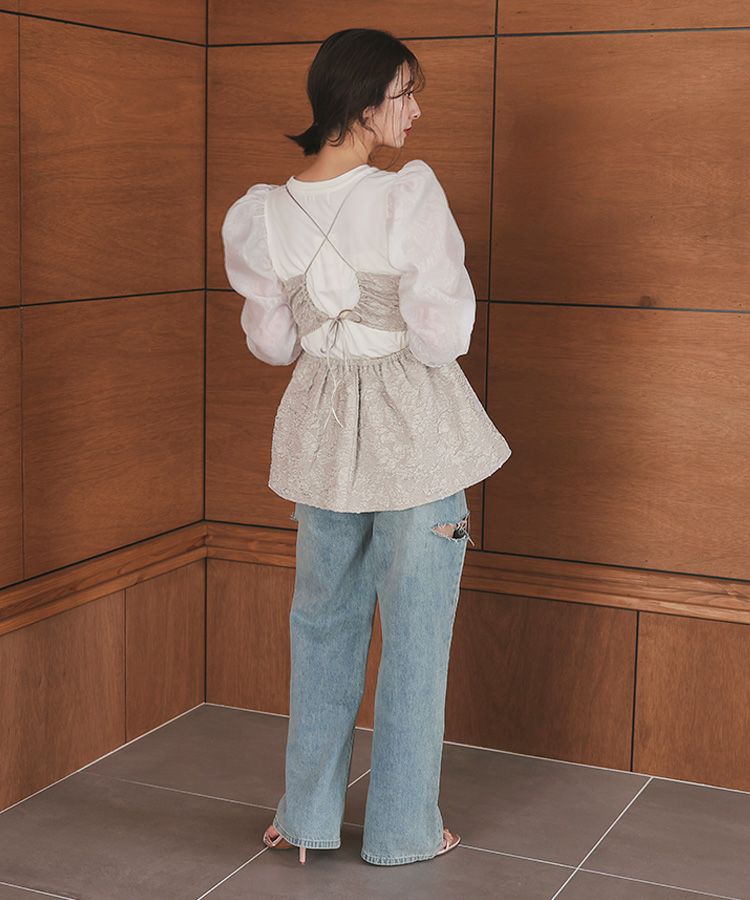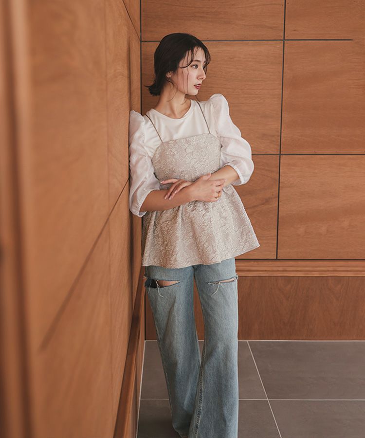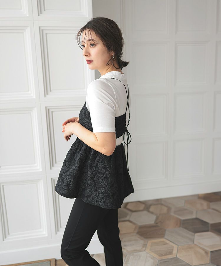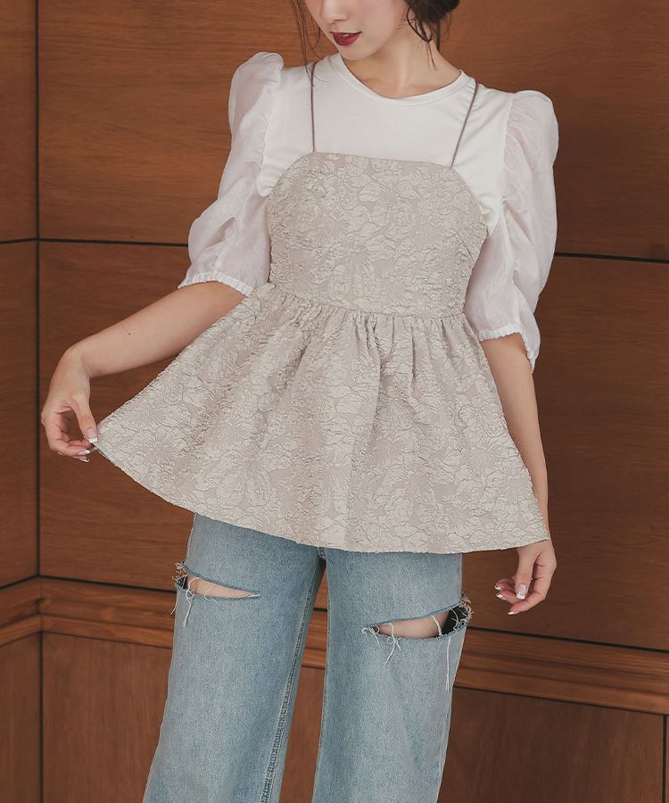 ふわっとボリュームのあるシルエットが華やかさを演出する、今季マストのキャミビスチェ。
