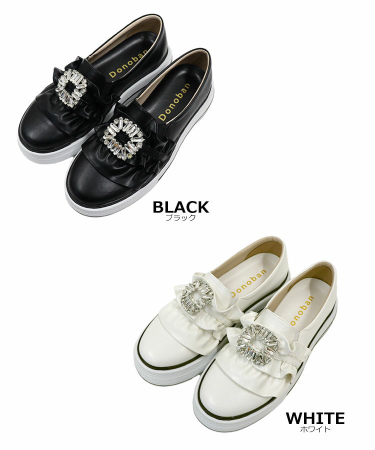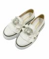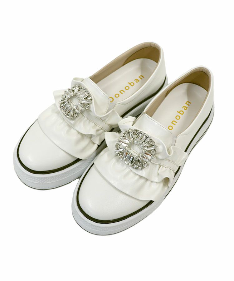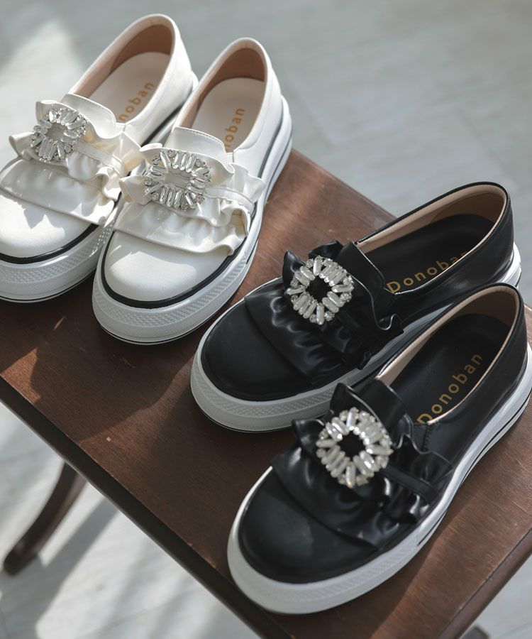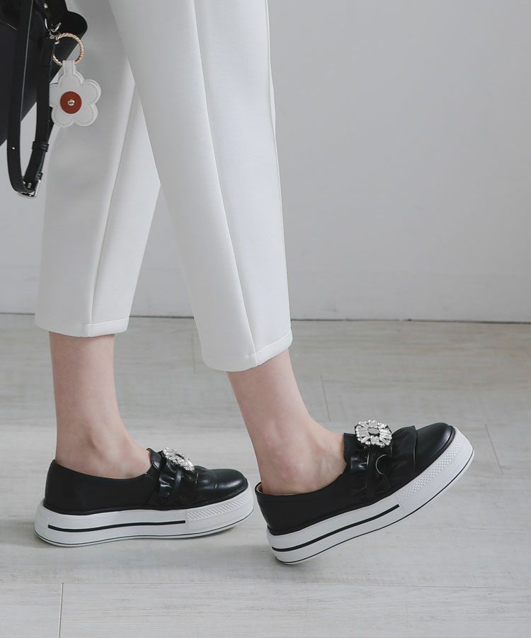 キラキラバックルとボリュームのあるフリルがドッキングされた大人可愛いスニーカー。