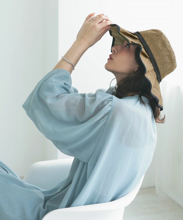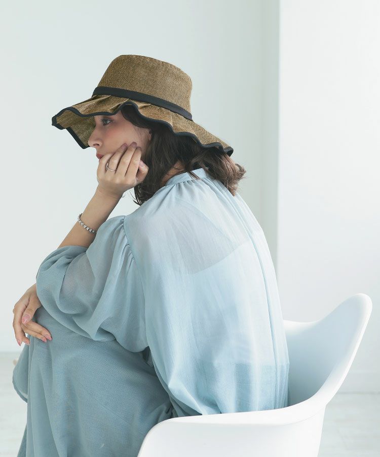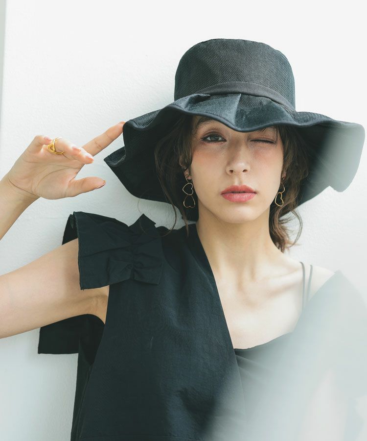 フリルのようなデザインで、かぶるだけでいつもと違った雰囲気に。
