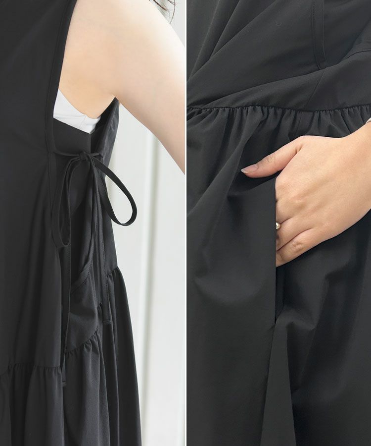 サラッと涼しくてストレスフリーの撥水ワンピースは、夏のお出かけにもピッタリ✨ 1枚でもデザイン性もあり、身体のラインを拾わずスッキリ見せしてくれるのもオススメポイント。