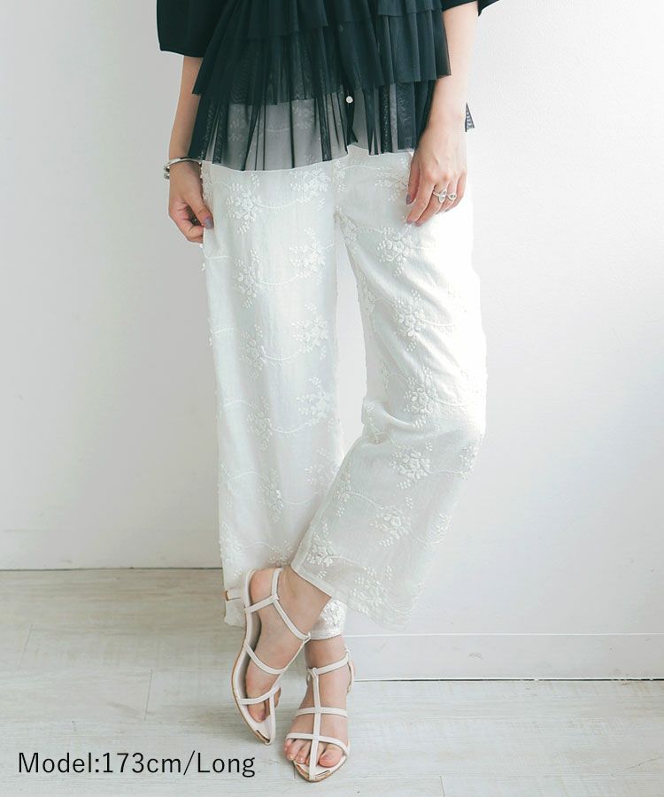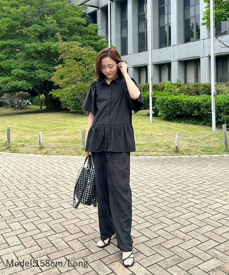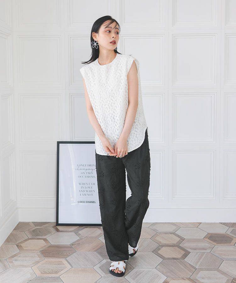 サラッとした涼しい生地でゆるっとしたサイズ感が暑い日にピッタリ。 上品な刺繍が大人っぽく着ていただけます。 私はセットアップで着るのがオシャレ見えするので、好きです♡