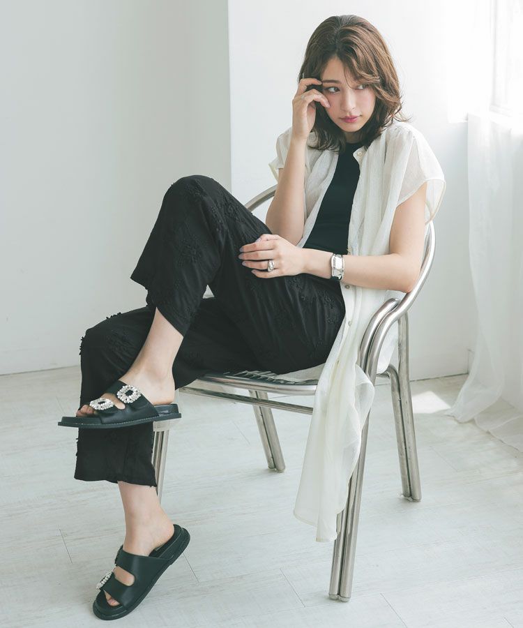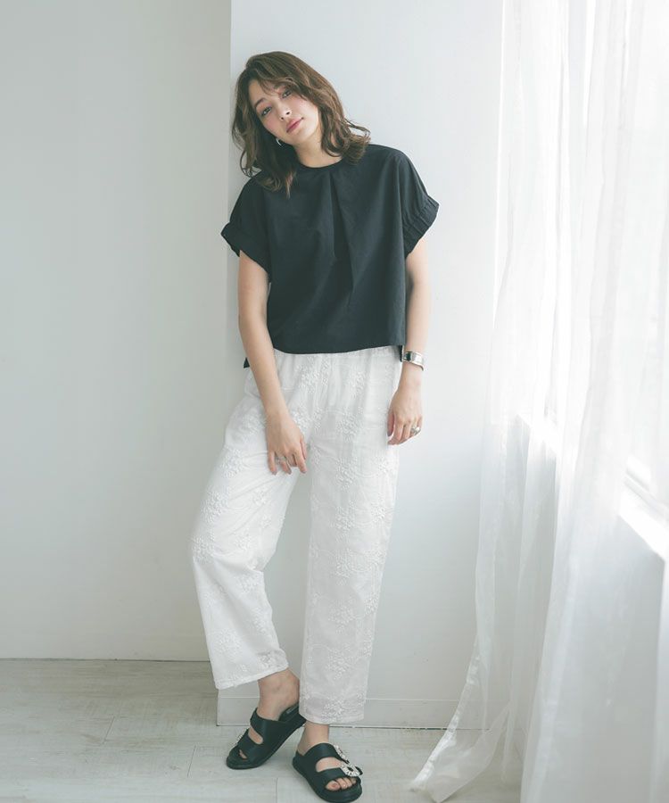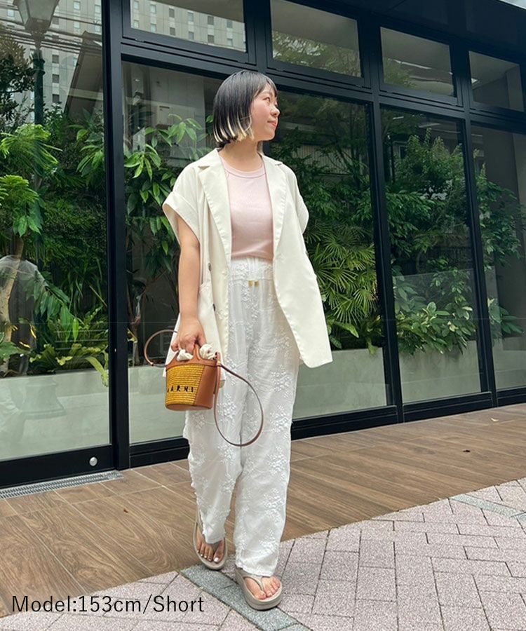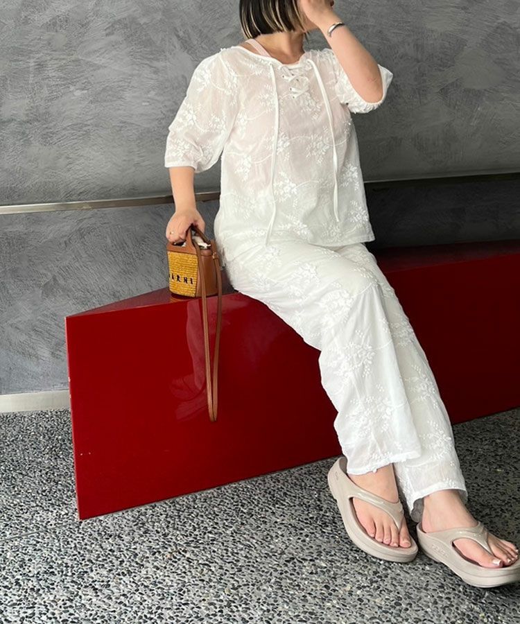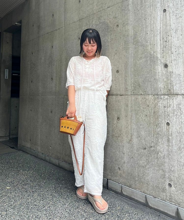 夏にぴったりのエンブロイダリーシリーズ。 パキッとしたホワイトが映えて、どんなスタイリングにも合い、お気に入り。 ヘビロテしている亜美さんコラボのバッグとの相性も◎