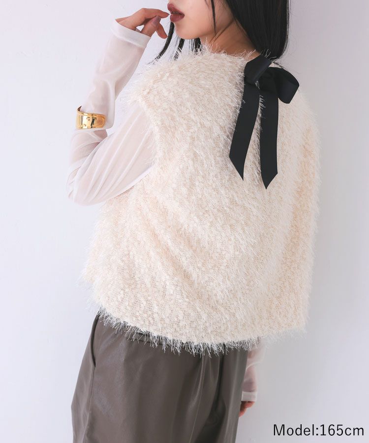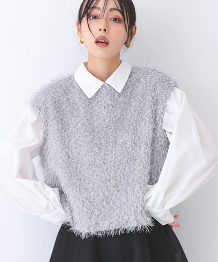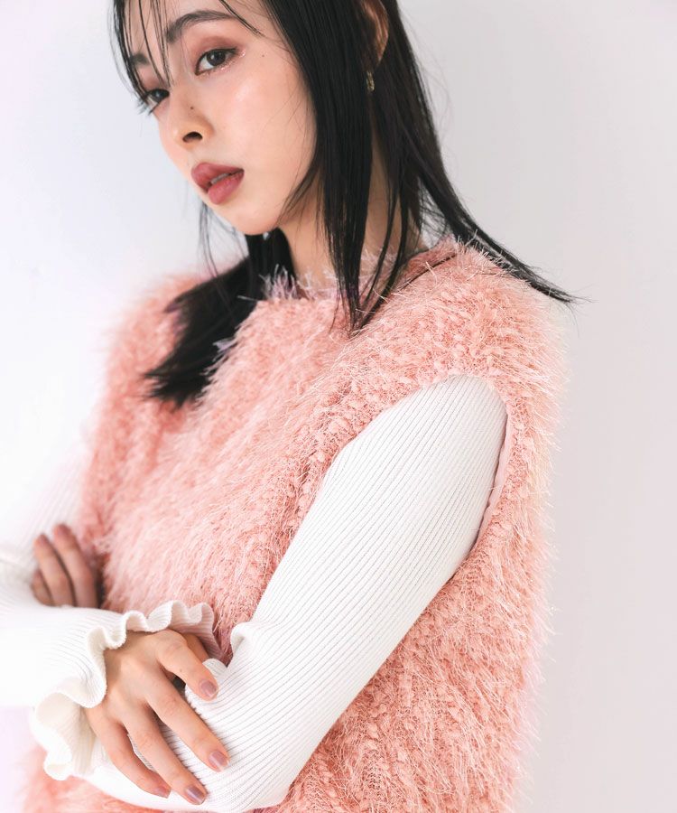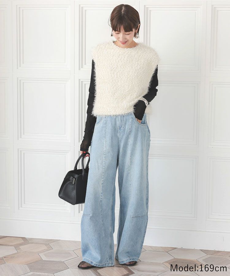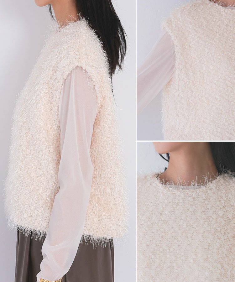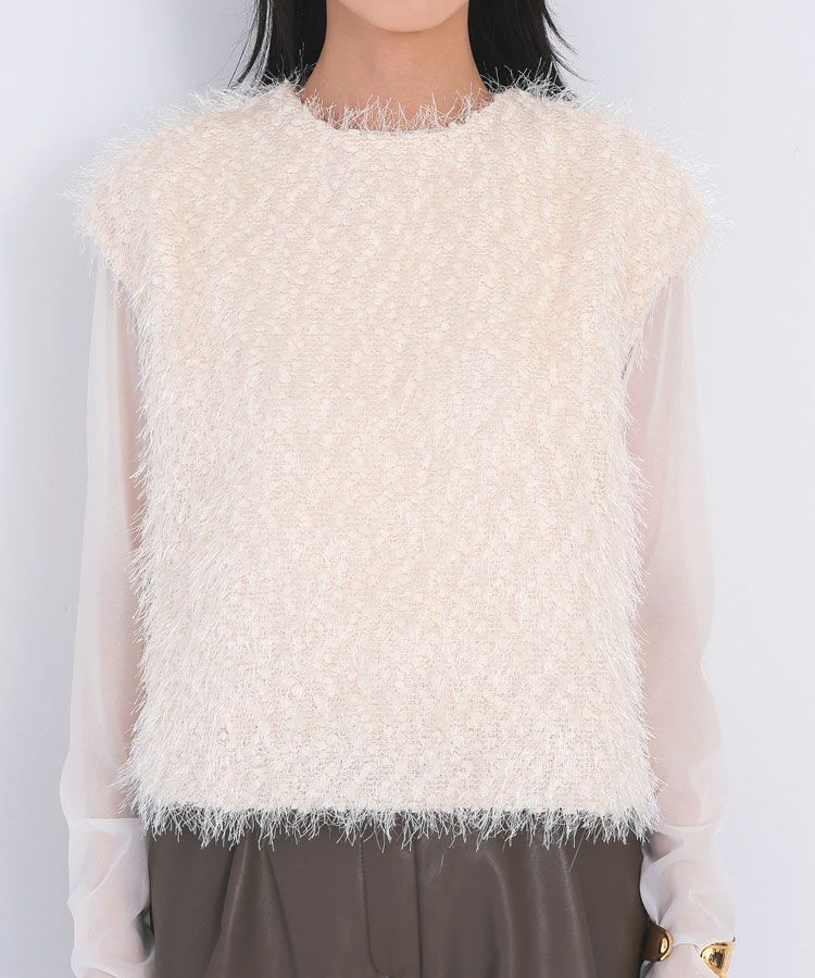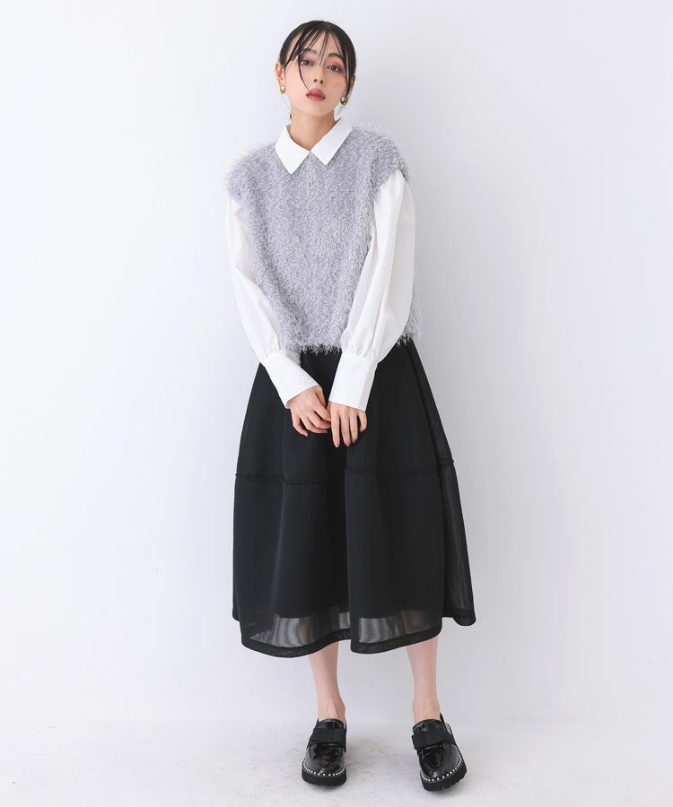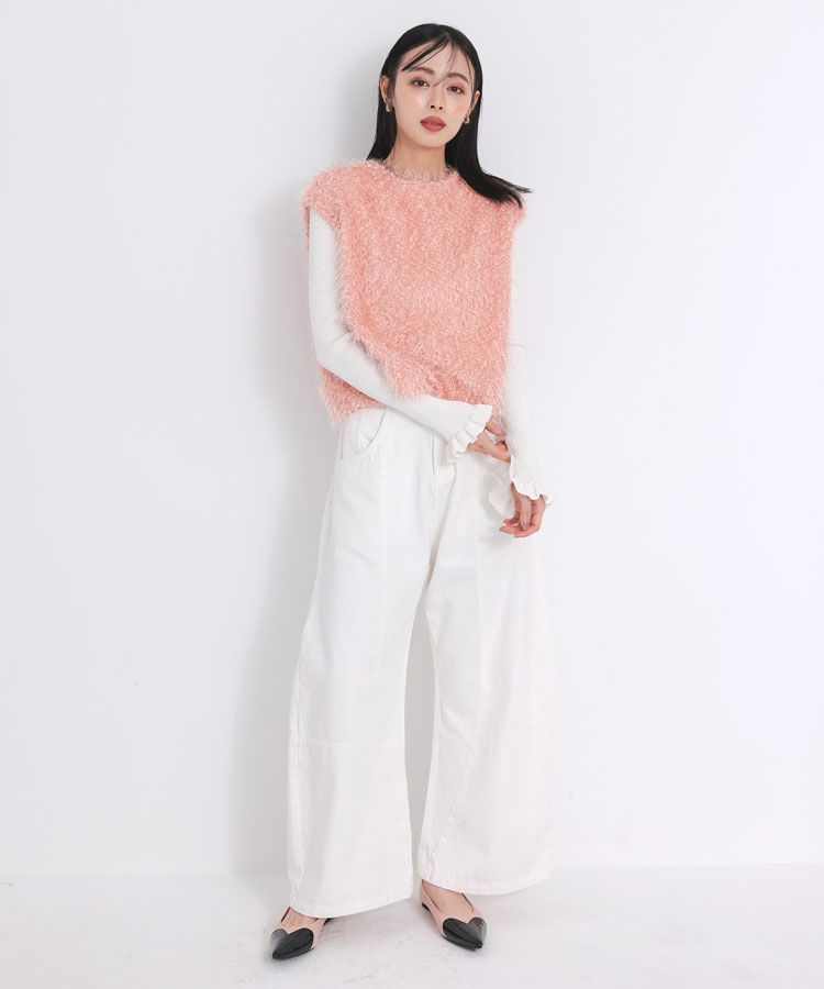 夏のワンピースにラメフェザートップスをレイヤードするだけで、一気に秋っぽさUP。 秋のホワイトワントーンコーデもオススメです。