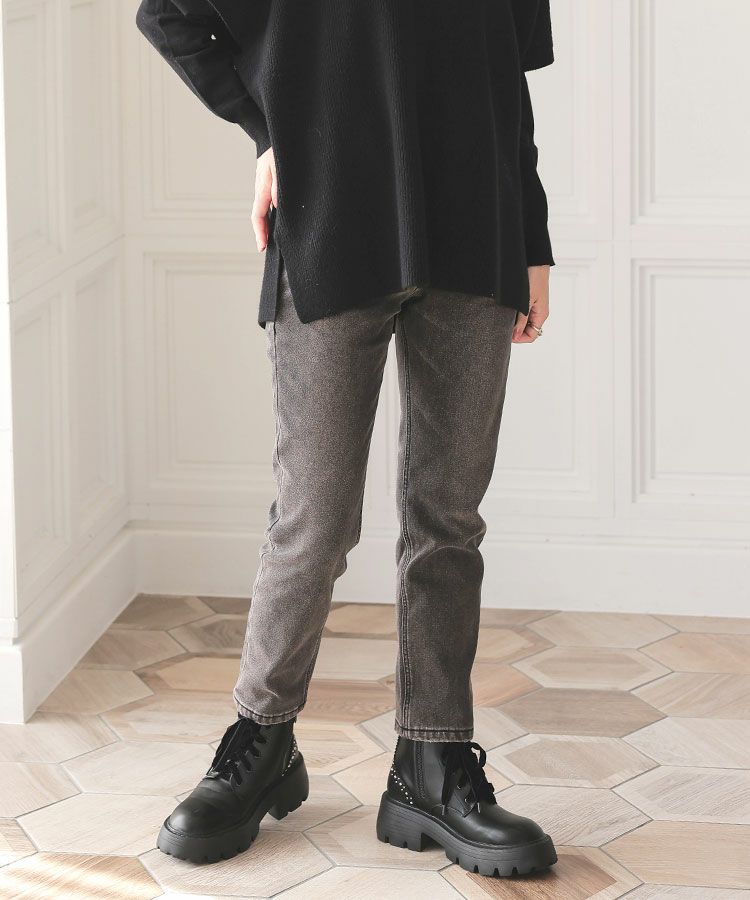 ストレッチ抜群で、すっきりとしたストレートシルエットの起毛デニムパンツ。