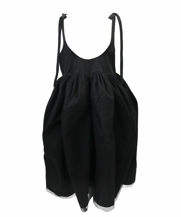 ハリ感のある素材ならではのボリュームとチュールのドッキングがポイント。