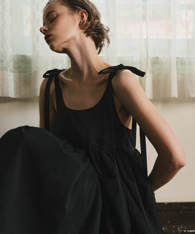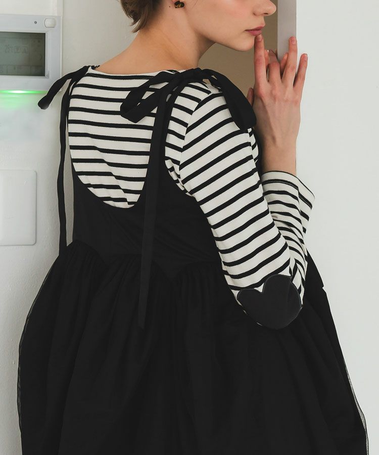 ショルダーのリボンで長さ調節ができる2way仕様。