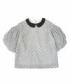 オシャレなドット柄のブラウス。ふんわりとしたアームと、バイカラーの襟がポイント。ずっとヘビロテなカーブデニムは、どんなトップスも更にオシャレ度を上げてくれます。