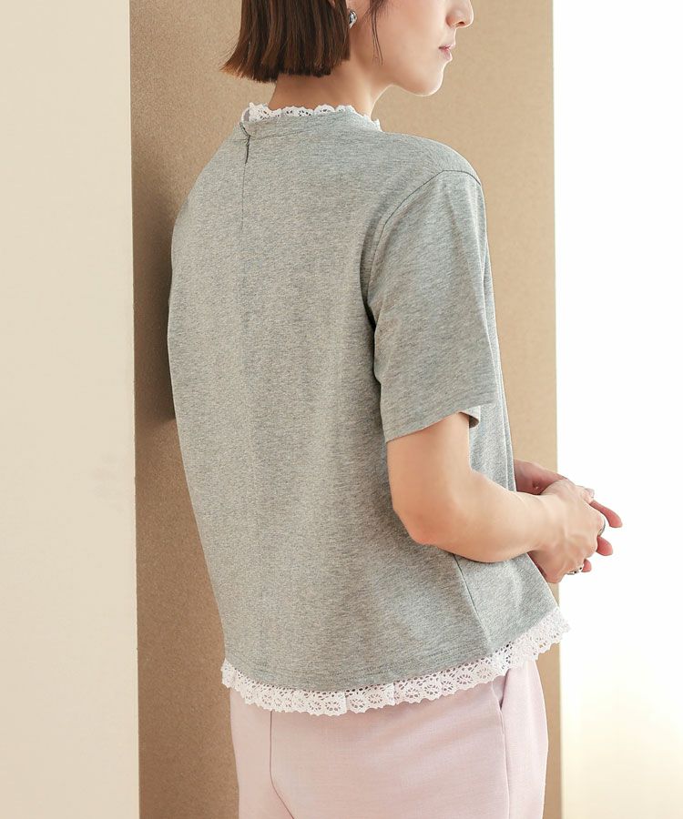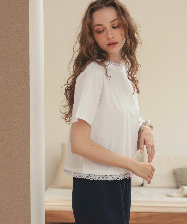 首周りと裾には、さりげないミニレースデザインが大人可愛いをプラス。