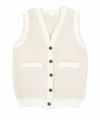 白購入。すっごく可愛い!素材感、サイズ感は可愛いけど、ボタンの留め方や首元の開け方、落とし方で違う雰囲気に出来るし、オールホワイトコーデしてもボタンカラーが少ししめてくれて膨張感が和らぎ、優秀ベストです。
