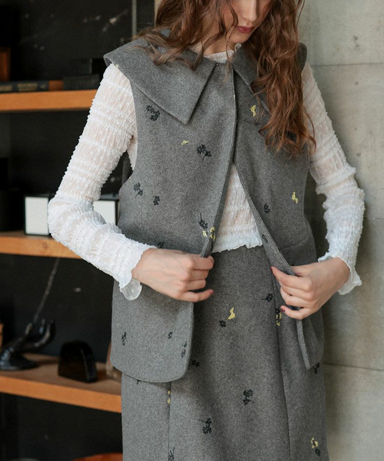 存在感のある大きめの襟は取り外しも出来る2wayデザインで、その日の気分に合わせてアレンジが出来るのも嬉しいポイント。