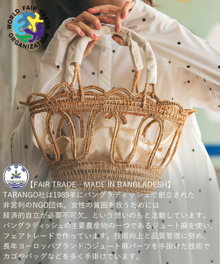 TARANGO社のジュートバッグ生産はその核となる活動の一つで、仕事を求め首都ダッカへの集中が広がる中、格差の広がる地方の貧しい女性に生産技術、工芸、販売を促し、フェアトレードによって対等な報酬を支払い彼女らの生活基準を押し上げていくというものである。