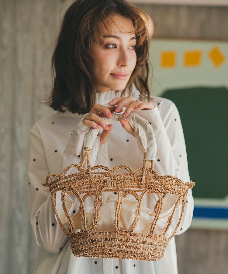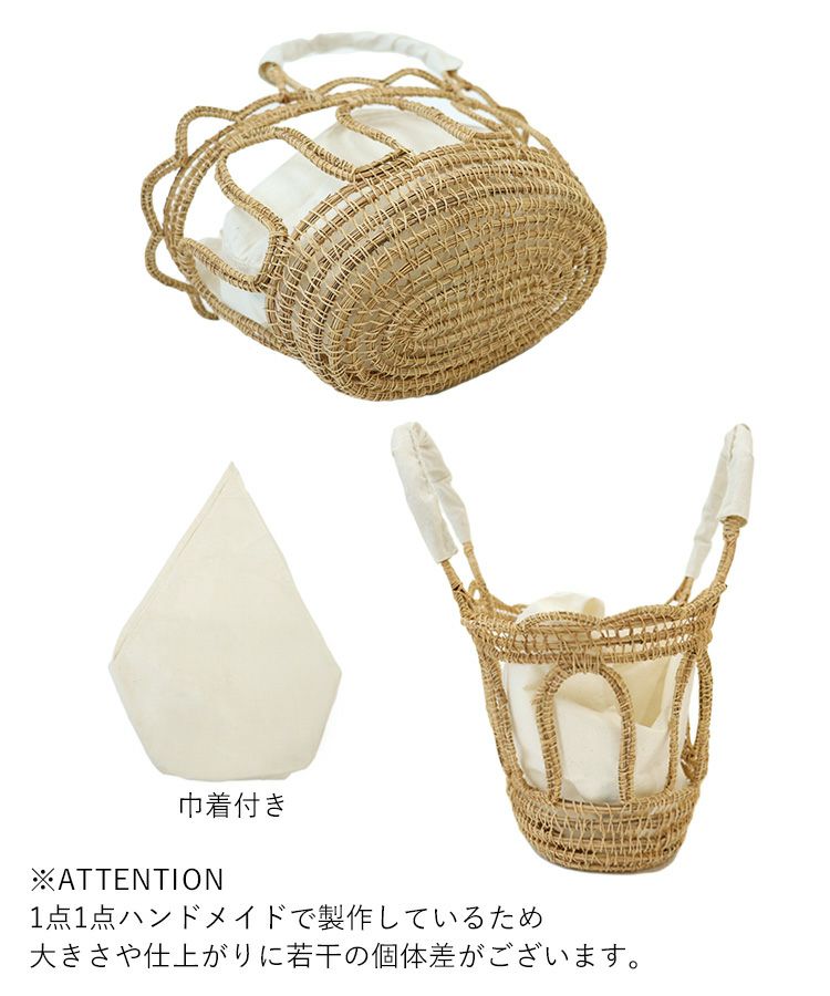 バングラディッシュで丁寧に編まれた、パーム素材のナチュラルなカゴバッグ。