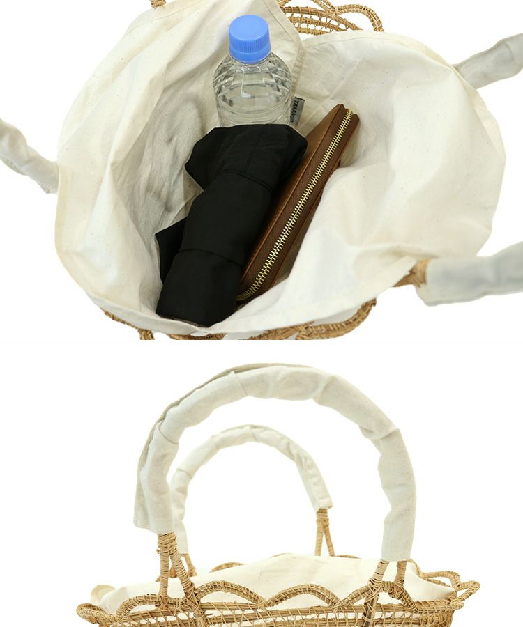 取り外し可能なコットンのインナーバッグ付きなので中の荷物も隠せます。