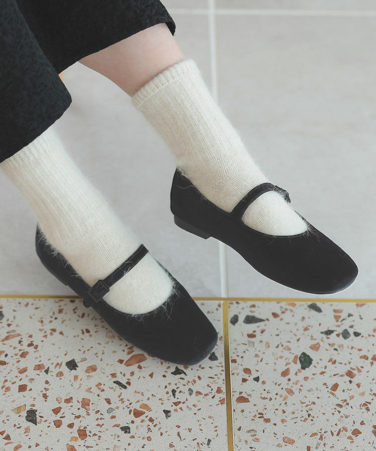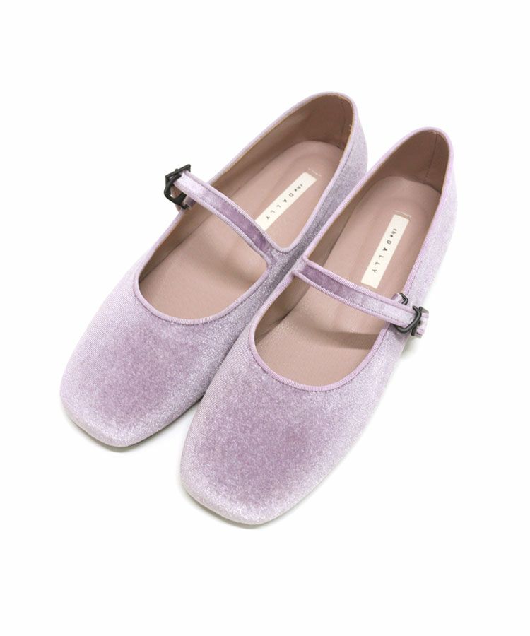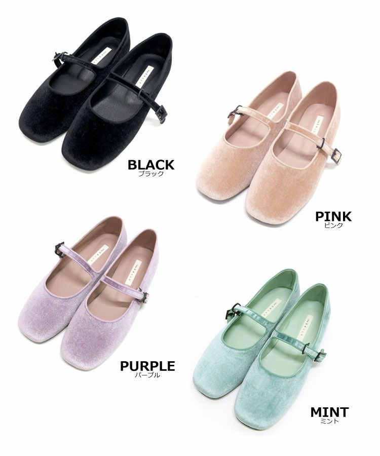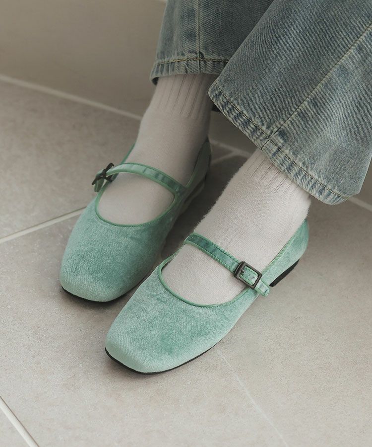 ベロアフラットストラップパンプス