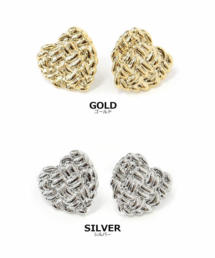 編み込まれたデザインがポイントのハートピアス。